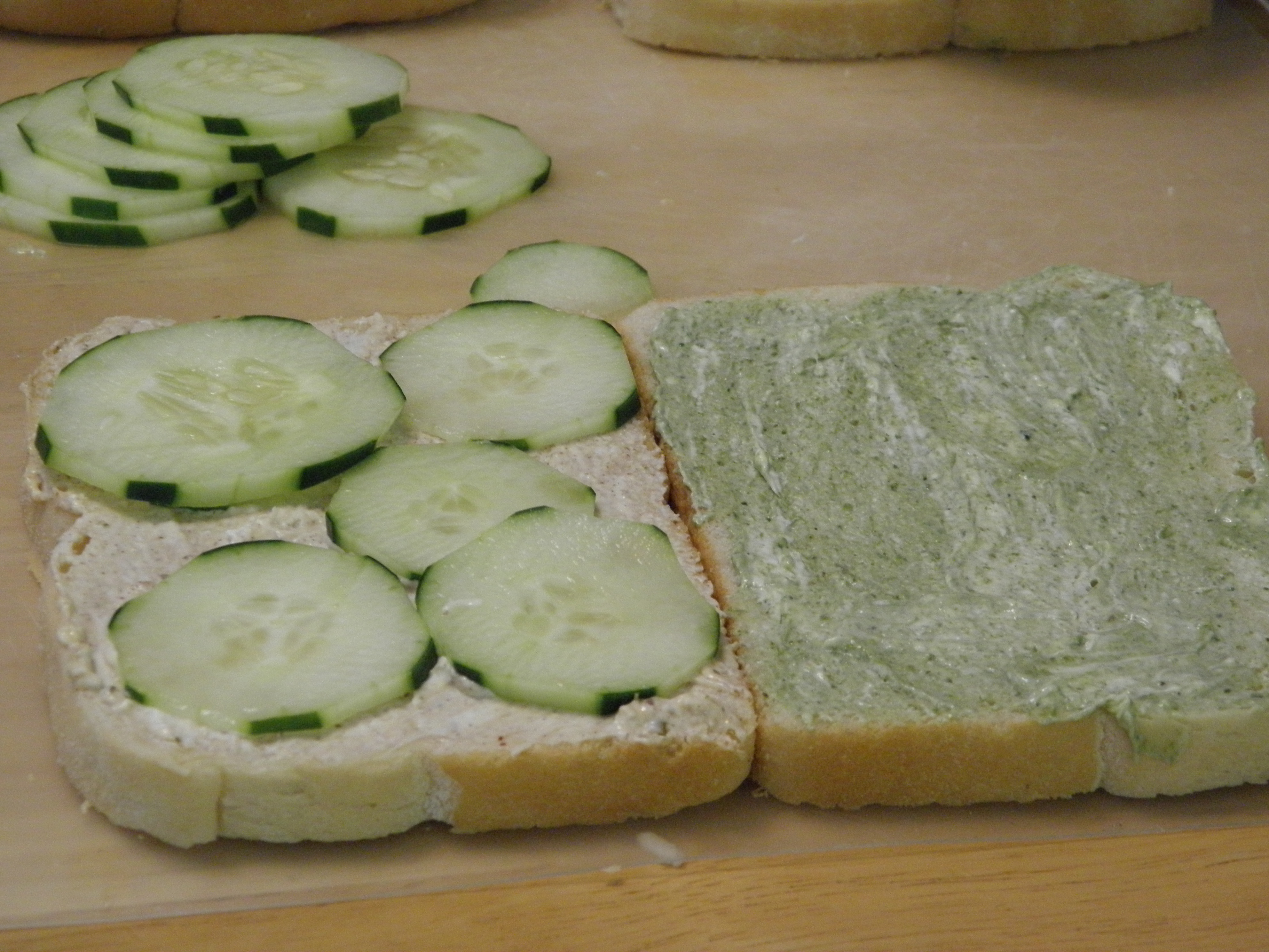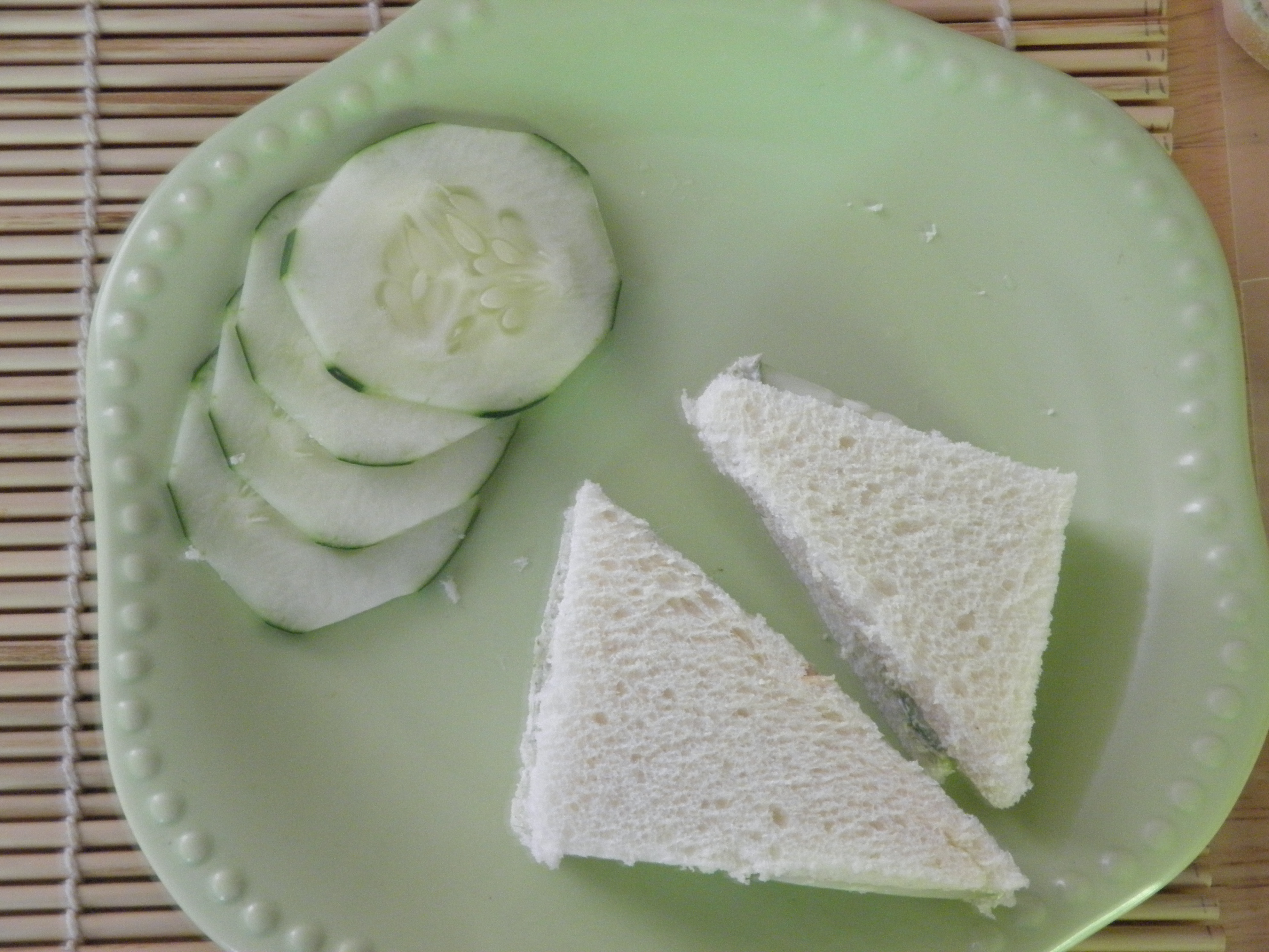 Wash, peel and cut the cucumber into thin slices. Spread the hot and sweet chutney ‘spread’ on the slices of bread and add the cucumbers.