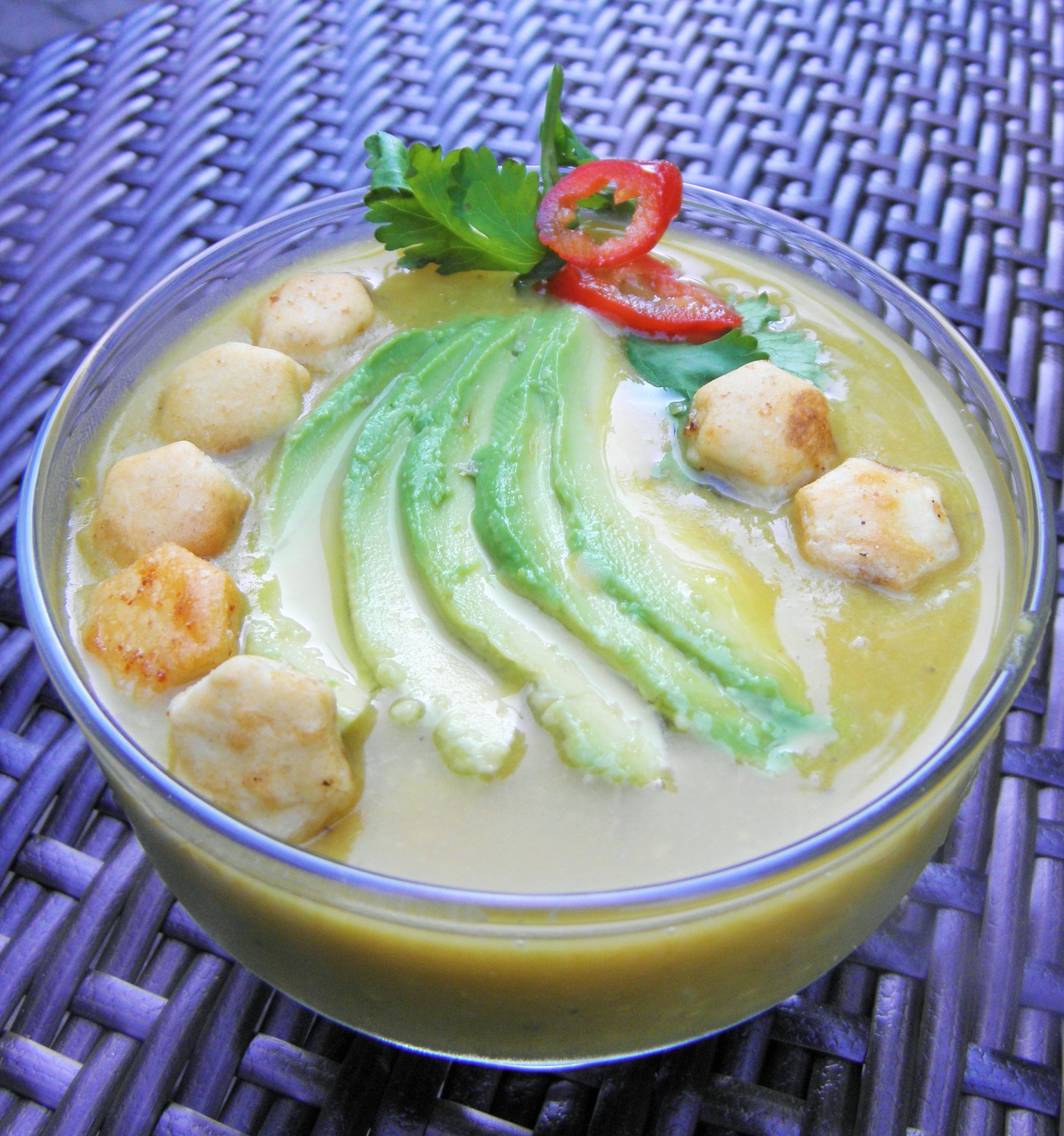 - Stir it in and remove from heat and serve the Curried Butternut Soup topped with the avocado and Masala crackers!