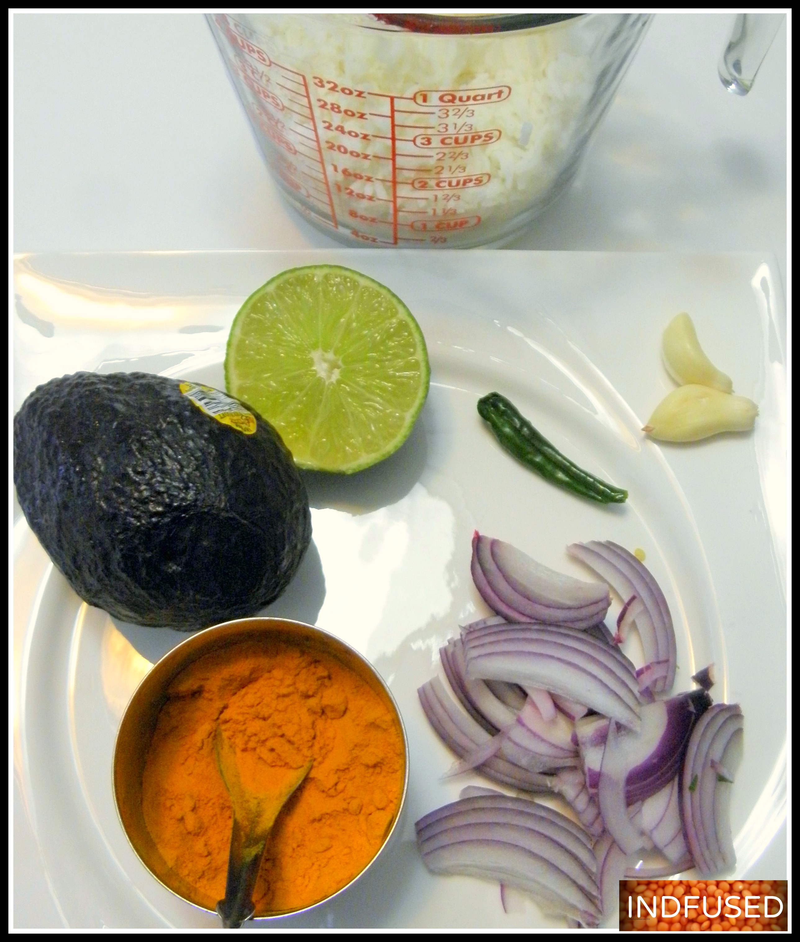 The recipe is so simple yet this rice dish scores big on the taste scale. The mashed avocado clings to the garlic and caramelized onion flavored rice, making it buttery and creamy. I made it vegetarian this time but I want to add shrimp next time to it….I can almost taste it…..but let me give you the recipe first.