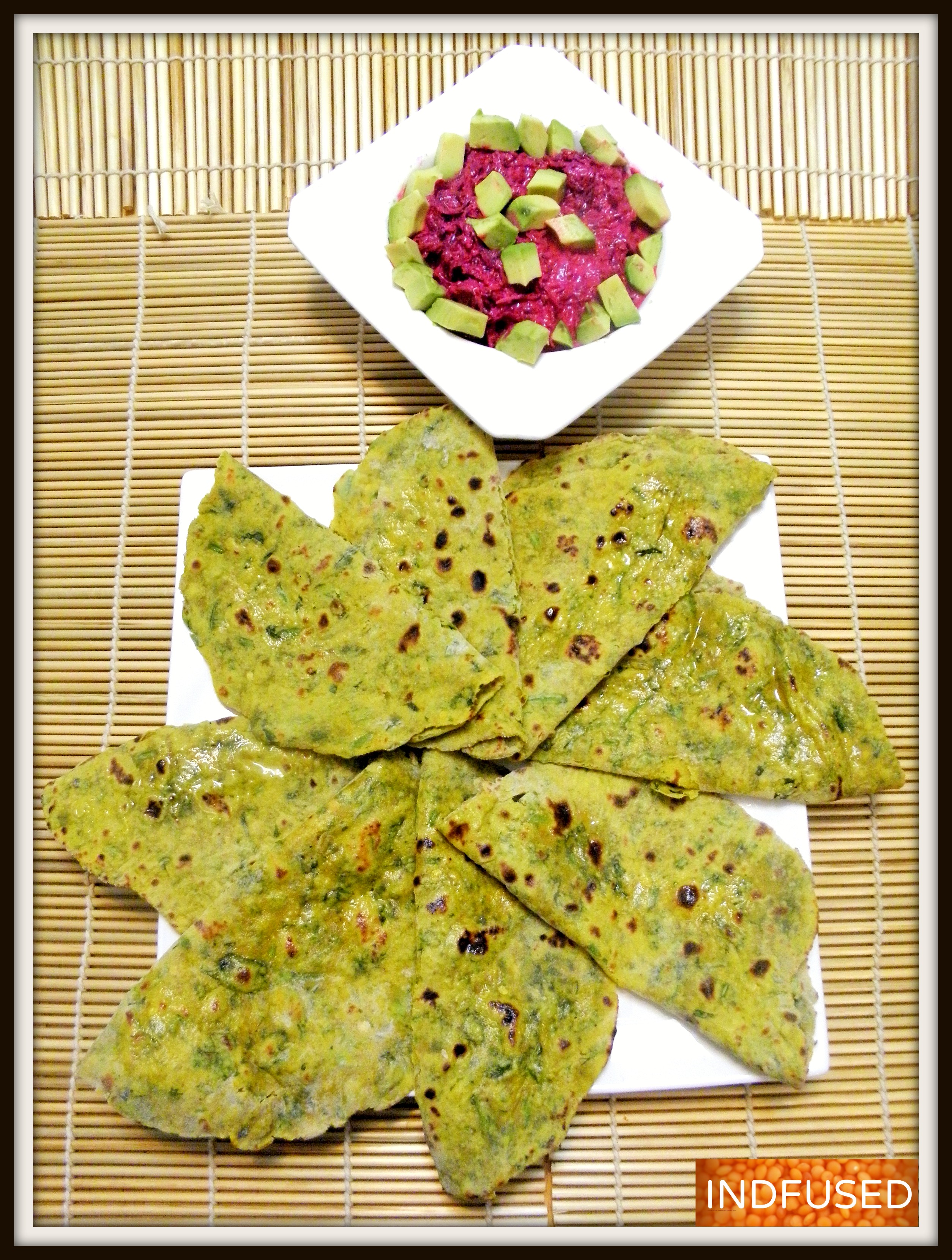 I simply served this Dal Methi Paratha with fresh beets and avocado raita and store bought sweet and tangy chunda pickle. The soft and luscious parathas have won us over and are sure to be on the regular menu in our house.