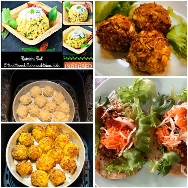 Spring and the Hindu month of Chaitra remind me Kairichi Dal, a Maharashtrian savory snack made when fresh raw mangoes are in the market. Kairichi dal is lip smacking yumminess. https://indfused.com/2020/06/20/kairichi-dal/ Kairichi Dal- a piquant and nutritious split pea salad with raw mango, served here in eco friendly leaf containers. I soaked chana dal for... Continue Reading →