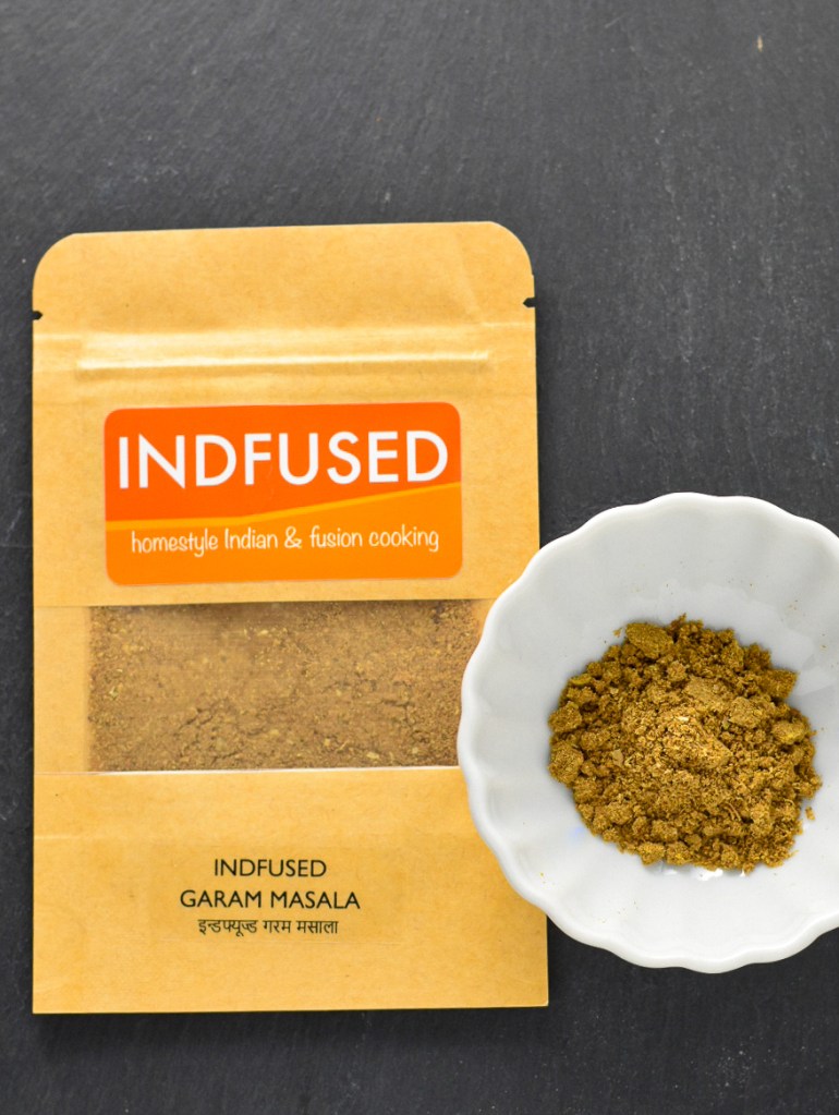 This Garam Masala is INDFUSED’s blend of carefully chosen warming spices that are roasted and ground. They lend the perfect touch to vegetable, beans, meat and poultry dishes. It is made fresh to order. Net weight = 0. 75 ounce